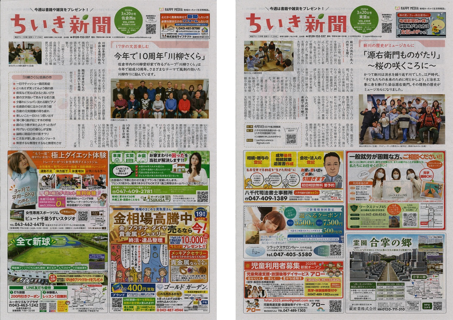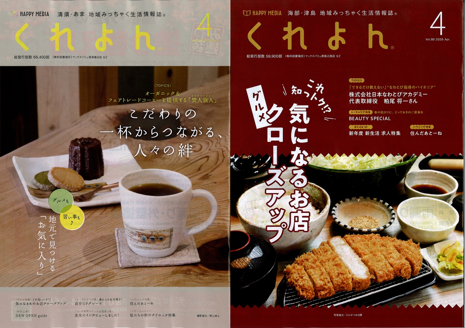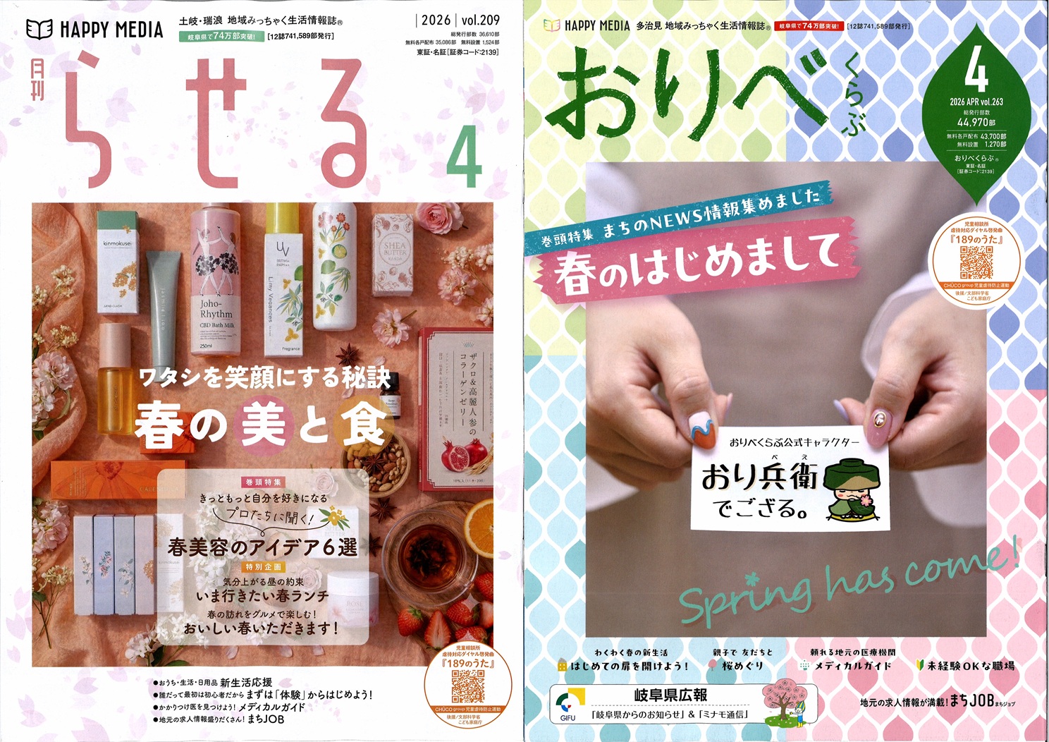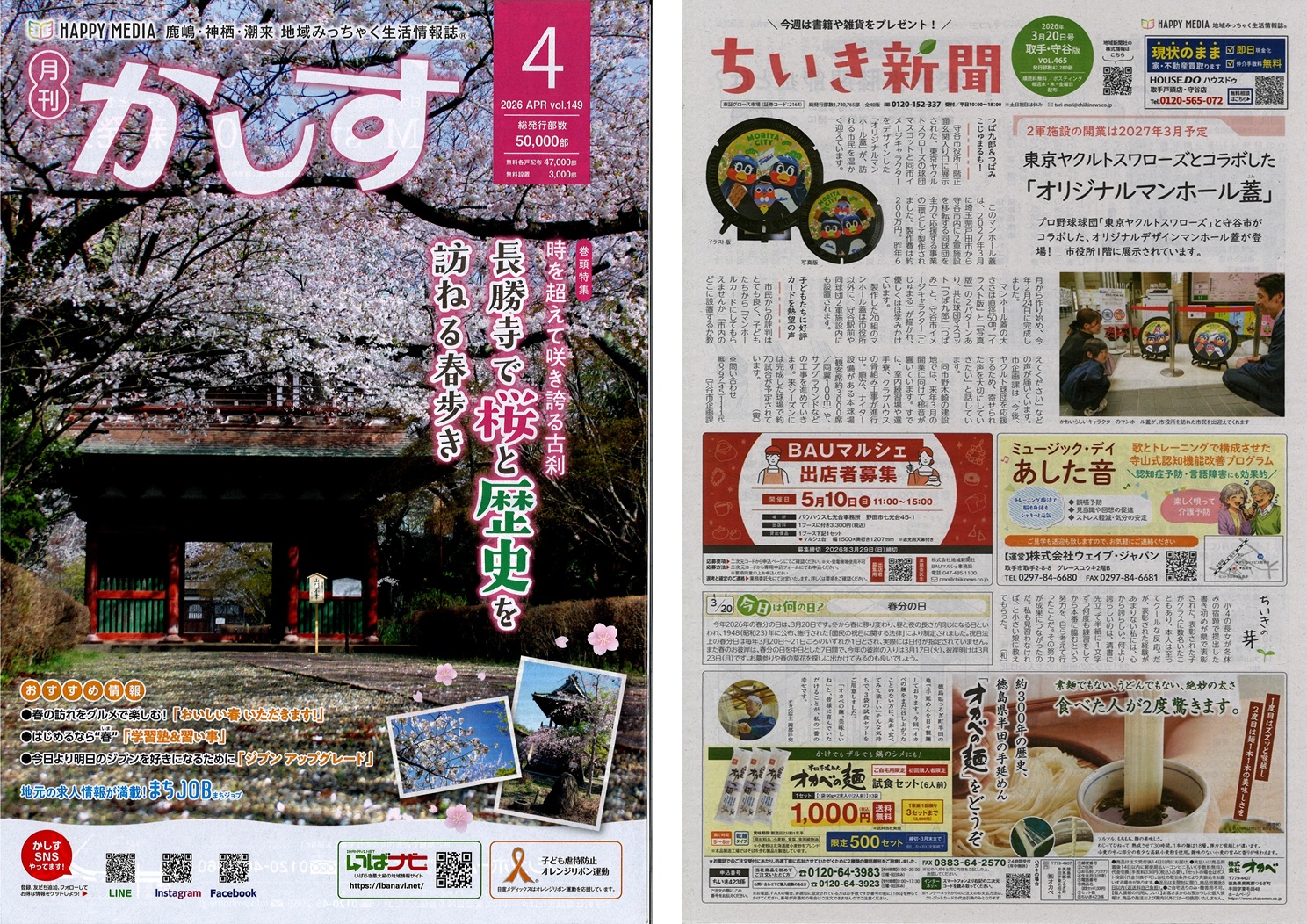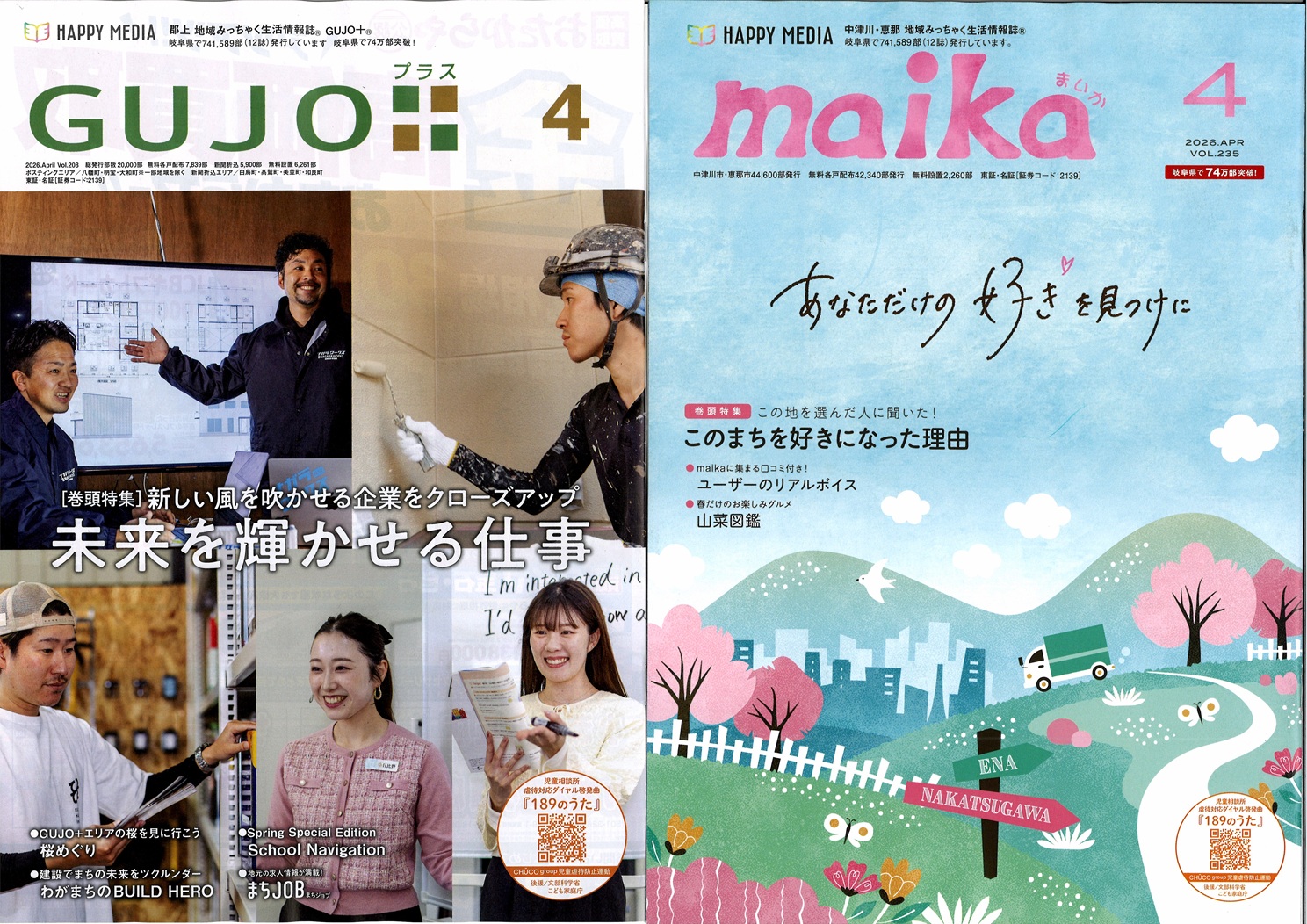 山形「あずまーる」10周年。米沢・南陽・長井・高畠・川西・白鷹・飯豊・小国と、着実に地域に根を下ろしています。三重・桑名市「ぽろん」20周年。創刊時の志が今に息づいています。