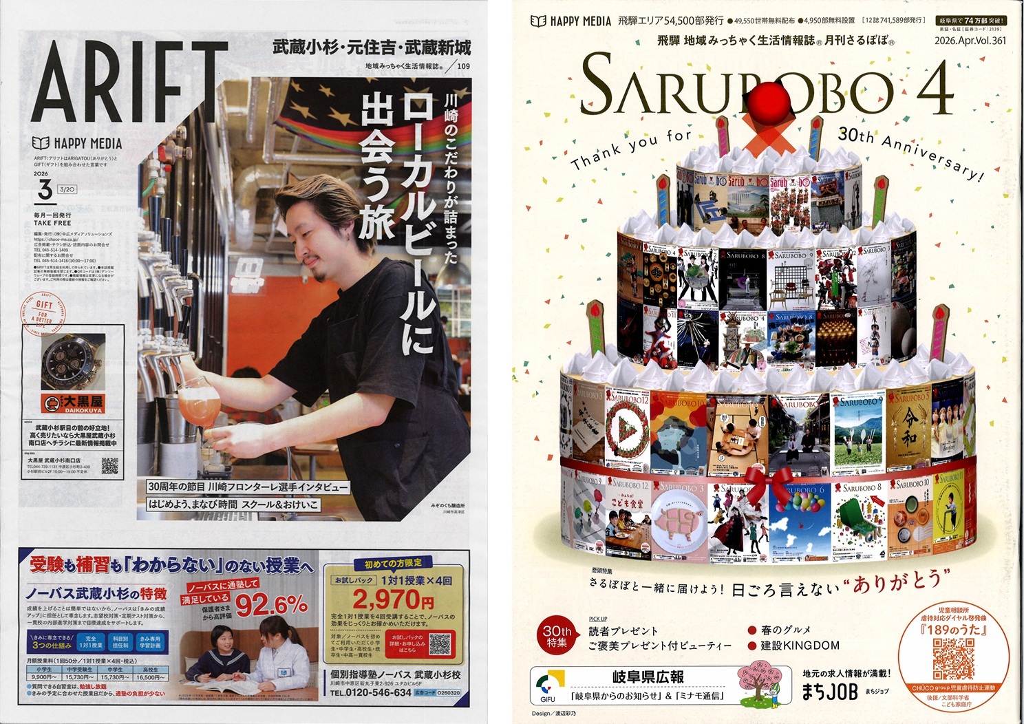 続いて創刊された飛騨高山の「月刊SARUBOBO」は、このたび30周年記念号を迎えました。誠に喜ばしく、感慨深い節目です。